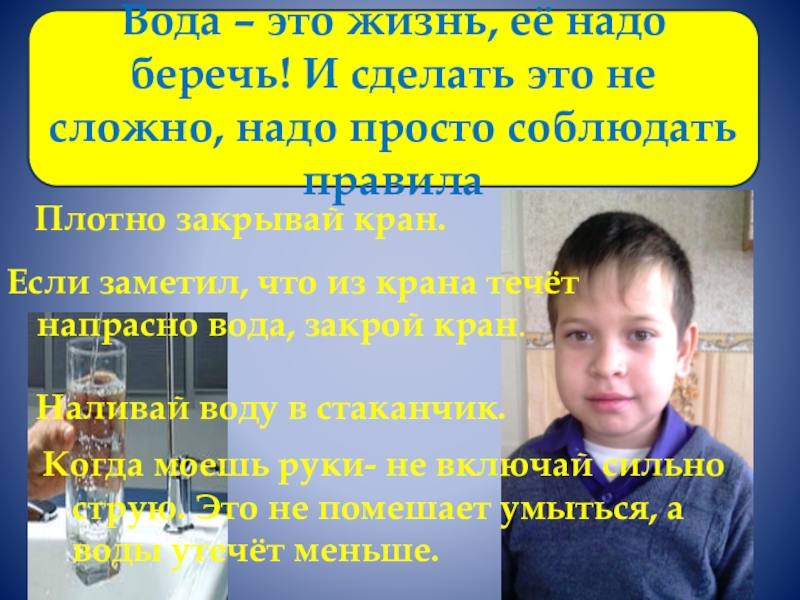 Вода – это жизнь, её надо беречь! И сделать это не сложно, надо просто соблюдать правила