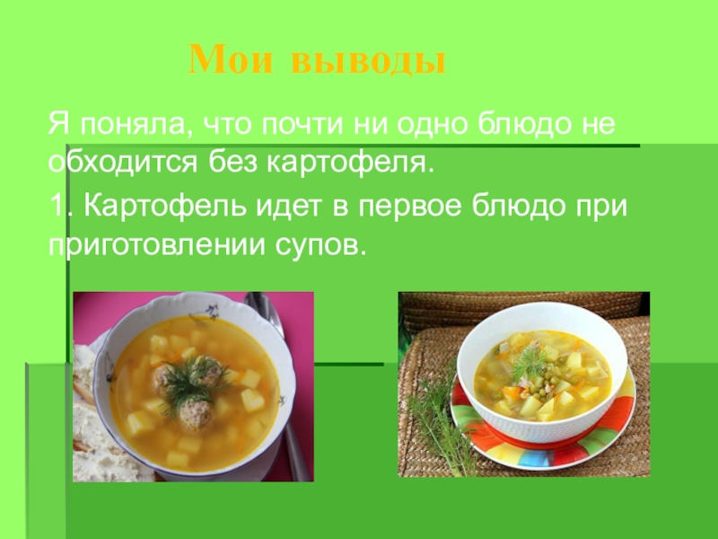 1. Картофель идет в первое блюдо при приготовлении супов.