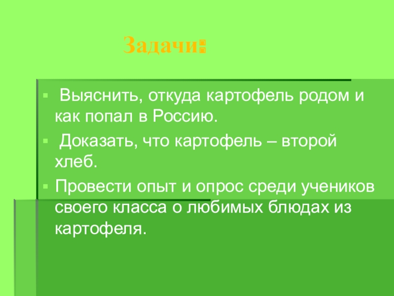 Провести опыт и опрос среди учеников своего класса о любимых блюдах из картофеля.