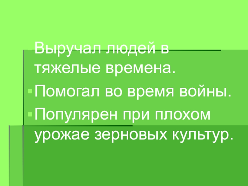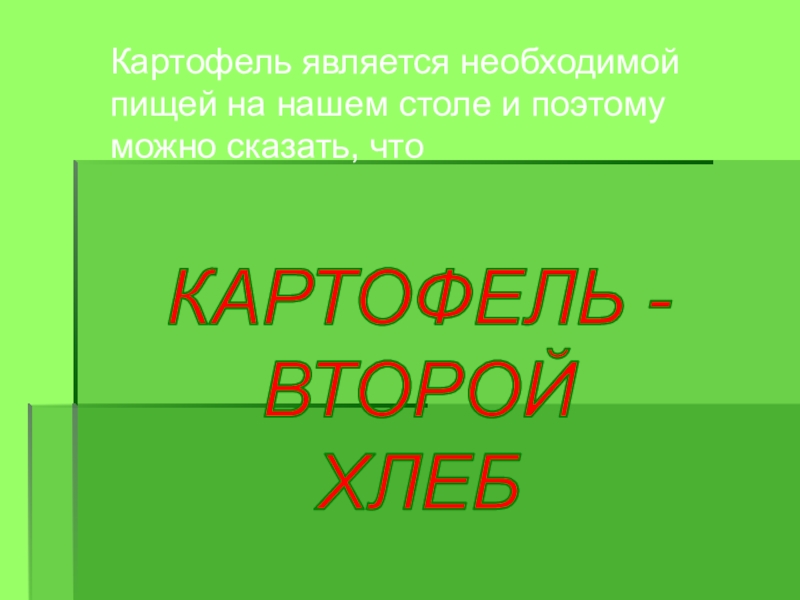 Слайд 17Картофель является необходимой пищей на нашем столе и поэтому можно сказать,