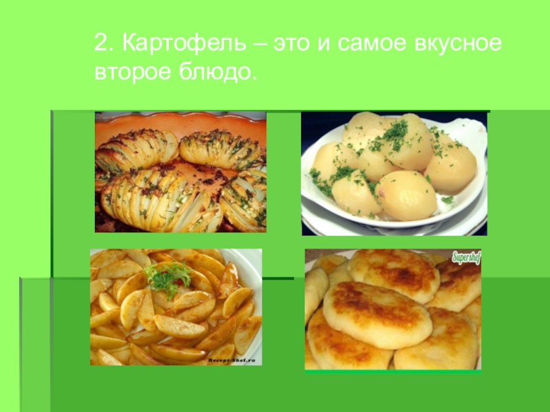 Слайд 132. Картофель – это и самое вкусное второе блюдо.