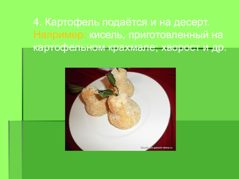 Слайд 154. Картофель подаётся и на десерт. Например: кисель, приготовленный на картофельном