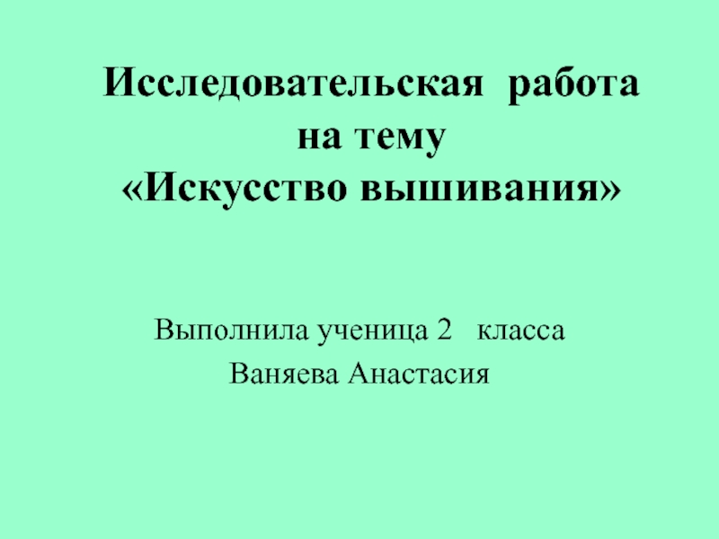 Исследовательская работа на тему «Искусство вышивания» Выполнила ученица 2  классаВаняева Анастасия