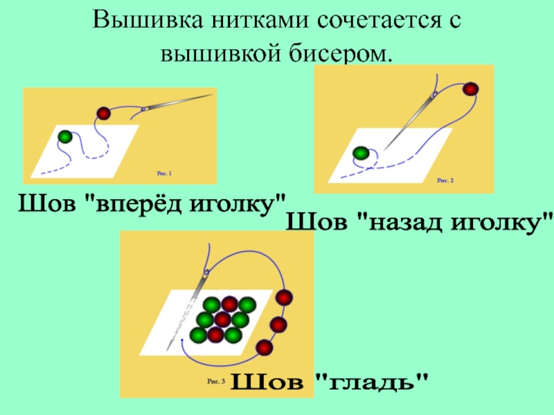 Вышивка нитками сочетается с вышивкой бисером.Шов
