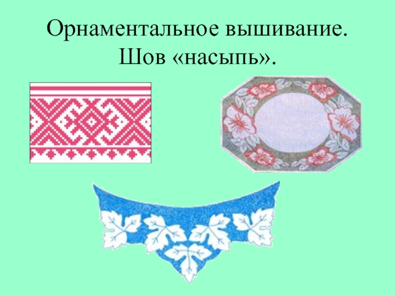 Слайд 8Орнаментальное вышивание. Шов «насыпь».