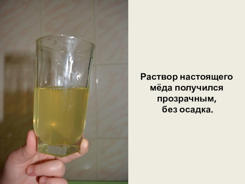 Раствор настоящего мёда получился прозрачным,
