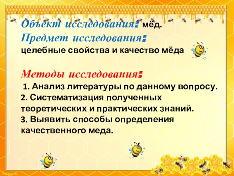 Слайд 5Объект исследования: мёд.