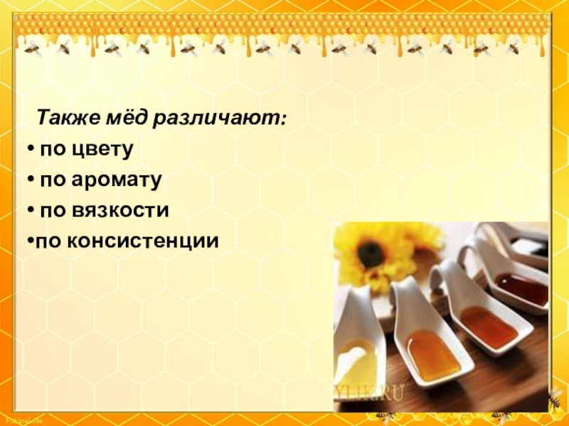 Слайд 13Также мёд различают: