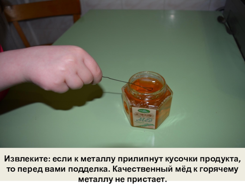Слайд 27Опыт 4. Определение металла в мёде.