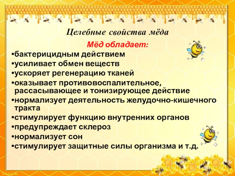 Слайд 2Мёд можно назвать удивительным природным лекарством, оказывающим неповторимое воздействие на организм