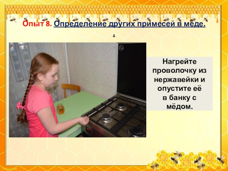 Слайд 35Опыт 8. Определение других примесей в мёде.