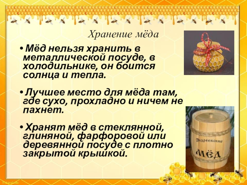 Слайд 20Хранение мёда