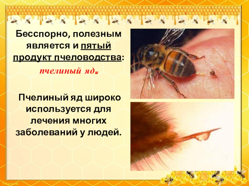 Слайд 19Бесспорно, полезным является и пятый продукт пчеловодства: