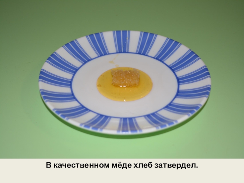 Слайд 23В качественном мёде хлеб затвердел.