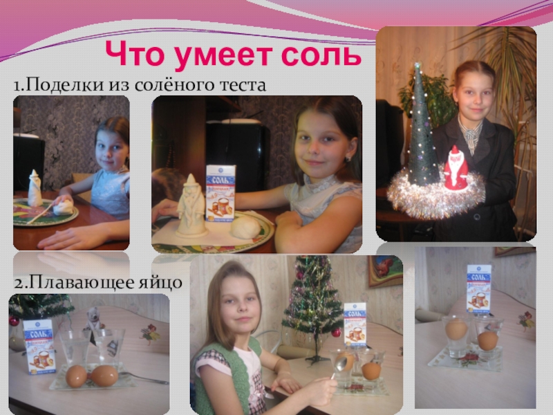 Что умеет соль1.Поделки из солёного теста2.Плавающее яйцо