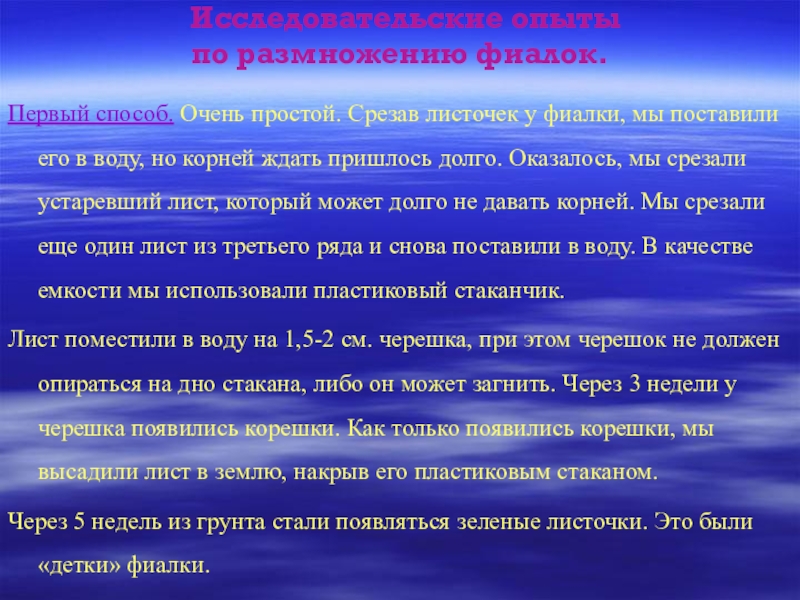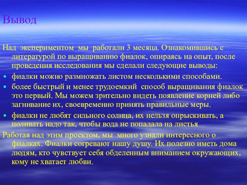 выращиванию фиалок, опираясь на опыт, после проведения исследования мы сделали следующие выводы: