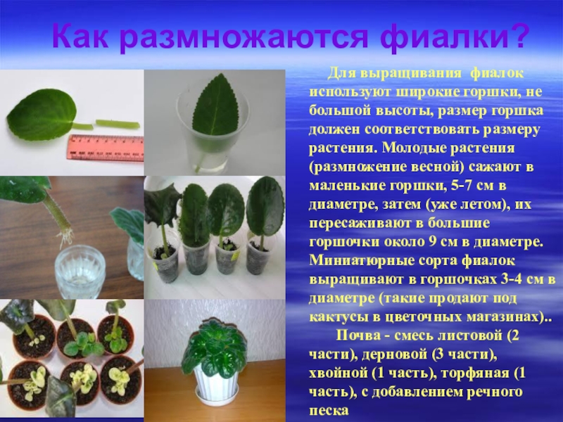 1.Самостоятельно вырастить цветок узамбарской фиалки из листа тремя способами: