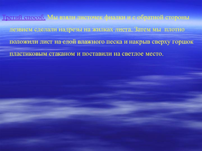 Третий способ. Мы взяли листочек фиалки и с обратной стороны лезвием