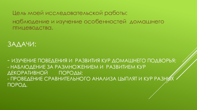 наблюдение и изучение особенностей домашнего птицеводства.