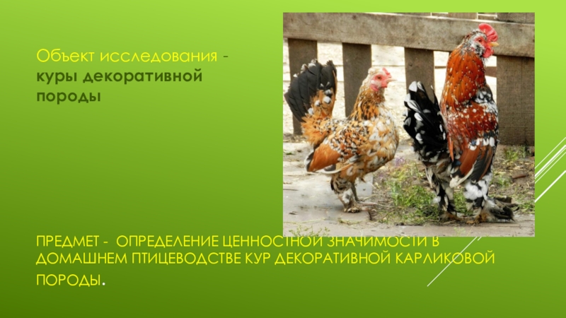 Объект исследования - куры декоративной породы
