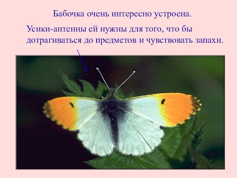 Усики-антенны ей нужны для того, что бы дотрагиваться до предметов и чувствовать запахи.