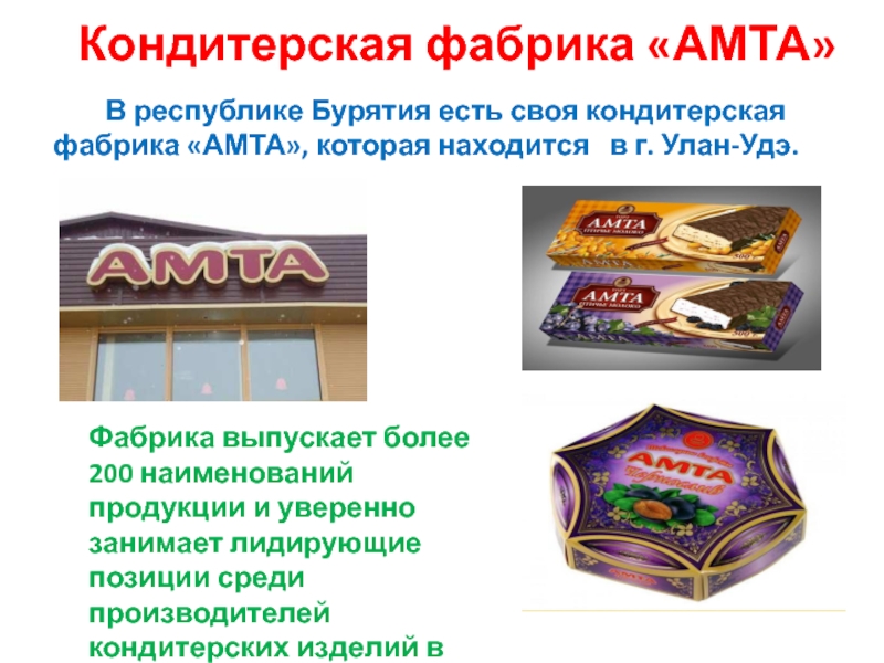 Фабрика выпускает более 200 наименований продукции и уверенно занимает лидирующие позиции среди производителей кондитерских изделий в Сибирском регионе.