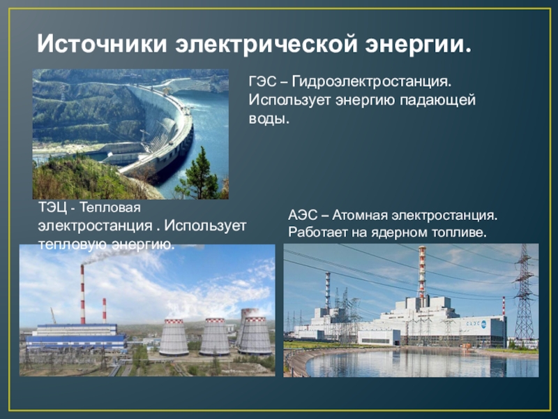 АЭС – Атомная электростанция. Работает на ядерном топливе.