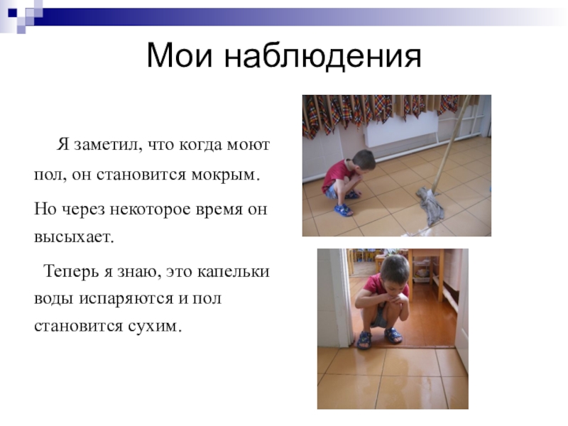 Я Я заметил, что когда моют пол, он становится мокрым.