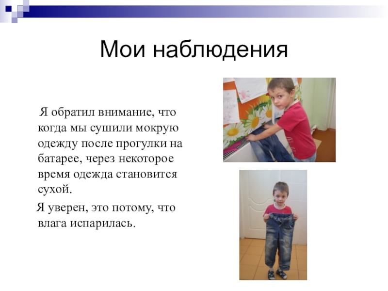 мокрую одежду после прогулки на батарее, через некоторое время одежда становится сухой.