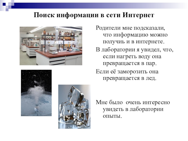 В лаборатории я увидел, что, если нагреть воду она превращается в пар.