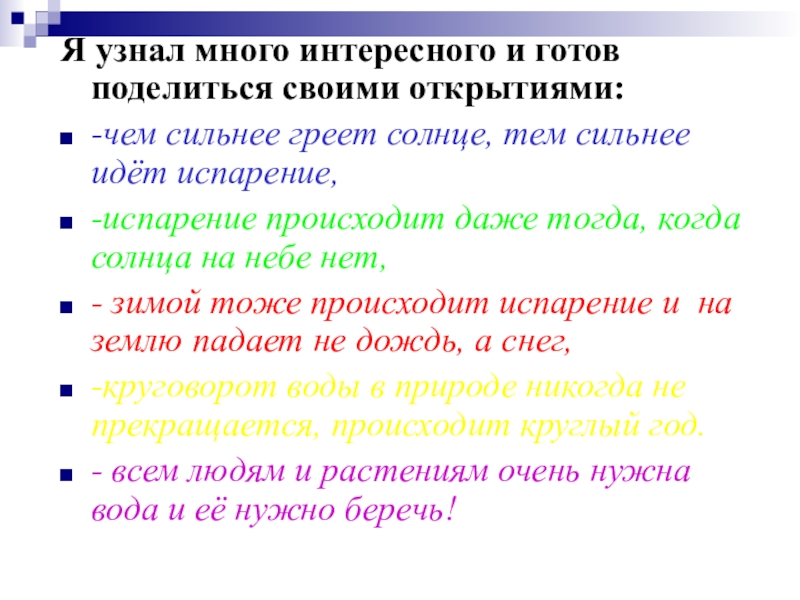 Слайд 23Я узнал много интересного и готов поделиться своими открытиями: