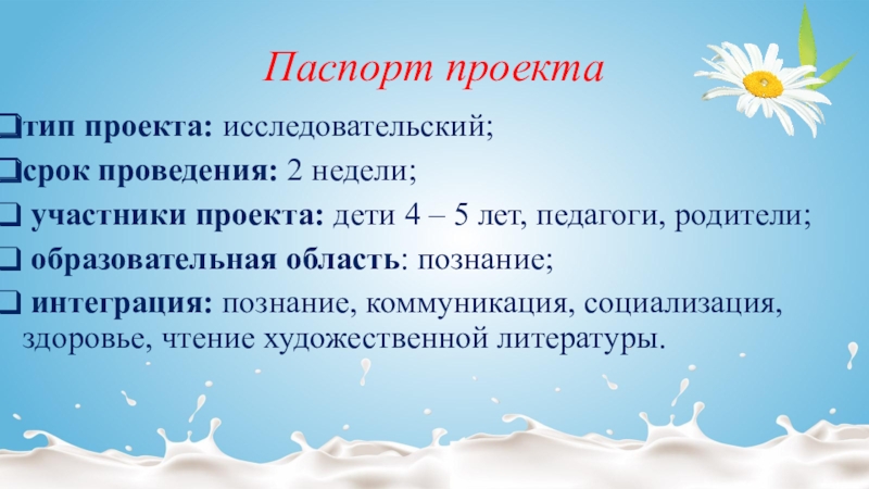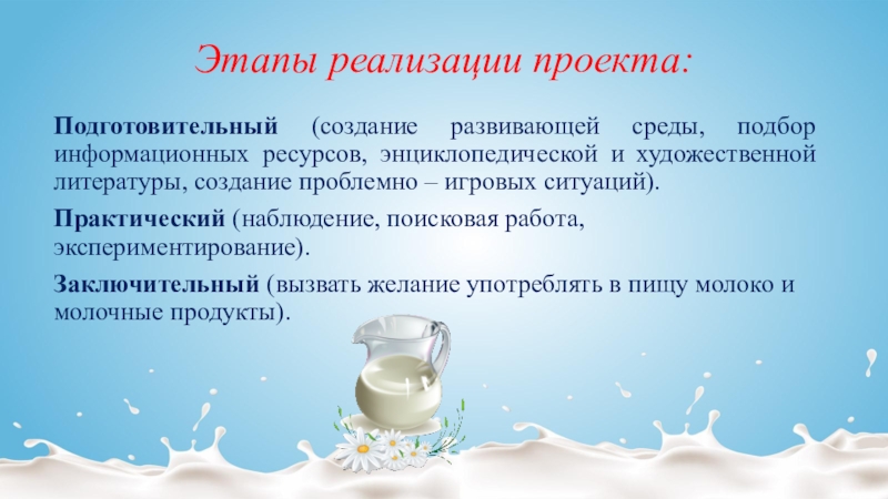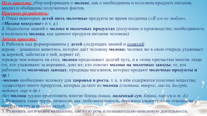 Слайд 4Цель проекта: сбор информации о молоке, как о необходимом и полезном