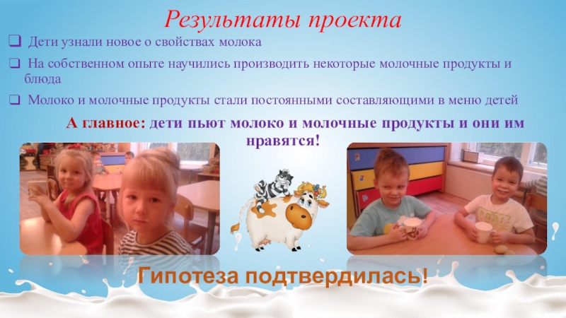 А главное: дети пьют молоко и молочные продукты и они им нравятся!