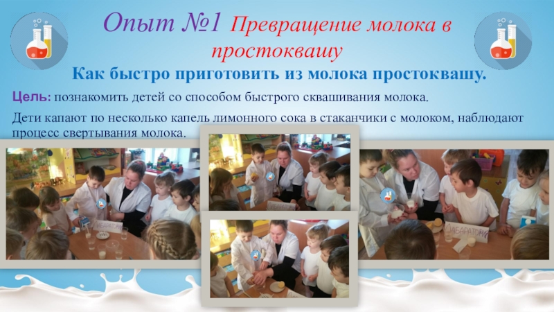Слайд 9Опыт №1 Превращение молока в простоквашу