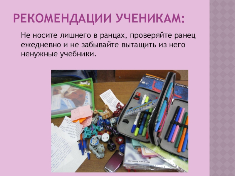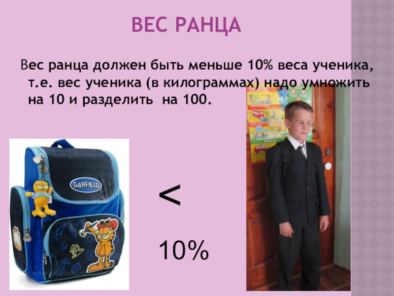Контроля над весом своего ранца, рюкзака.
