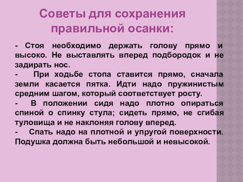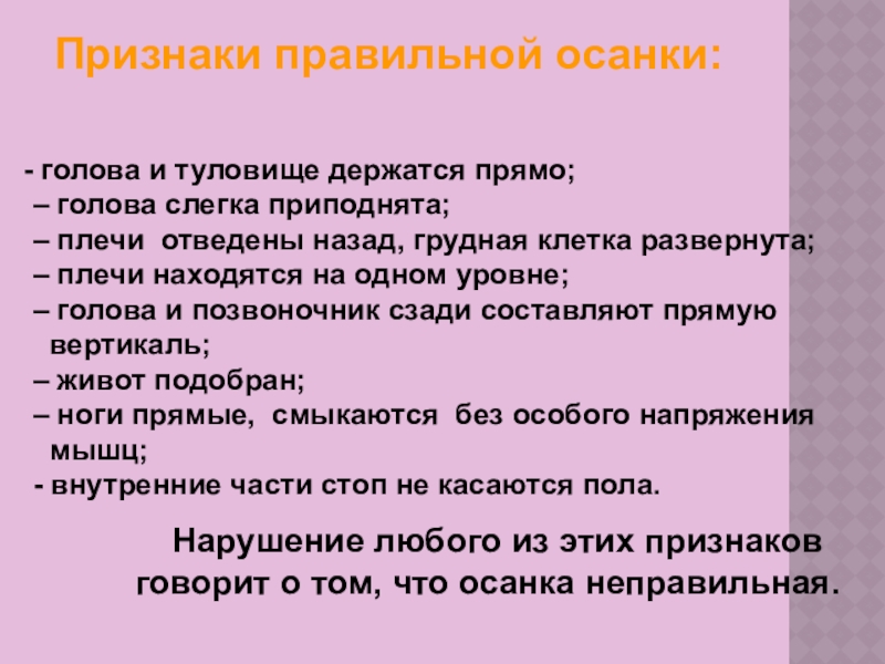 Признаки правильной осанки: