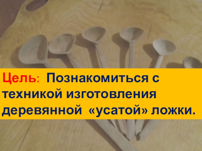Слайд 2Цель: Познакомиться с техникой изготовления деревянной «усатой» ложки.