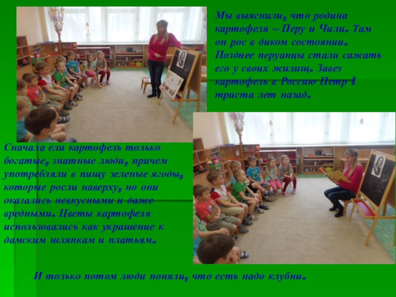 Сначала ели картофель только богатые, знатные люди, причем употребляли в пищу зеленые ягоды, которые росли наверху, но они оказались невкусными и даже вредными. Цветы картофеля использовались как украшение к дамским шляпкам и платьям.