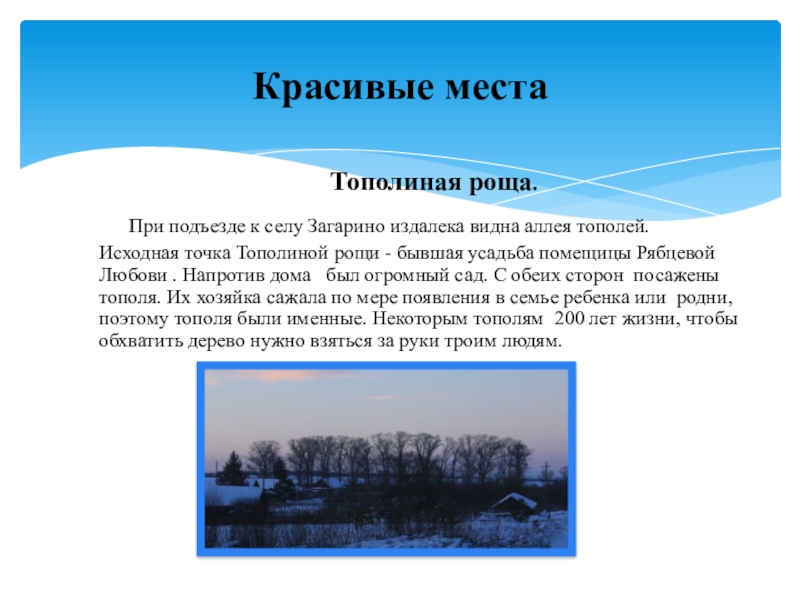 Из воспоминаний старожилов села «Помещица Любаша Рябцева любила свежий чай из воды, привозимой ежедневно из Ключей конюхом».