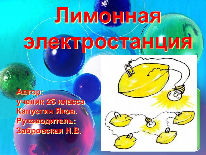 Лимонная электростанцияАвтор: ученик 2б класса Капустин Яков. Руководитель: Забровская Н.В.