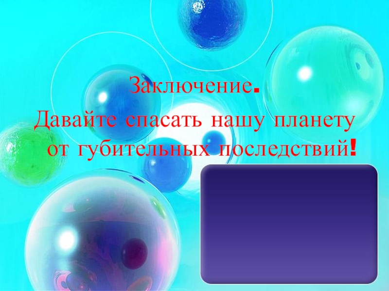 Заключение.Давайте спасать нашу планету от губительных последствий!