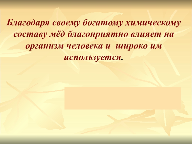 В состав мёда входят практически все химические соединения, необходимые для нормальной работы человеческого организма.