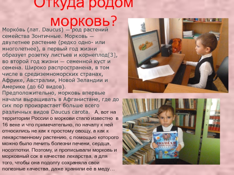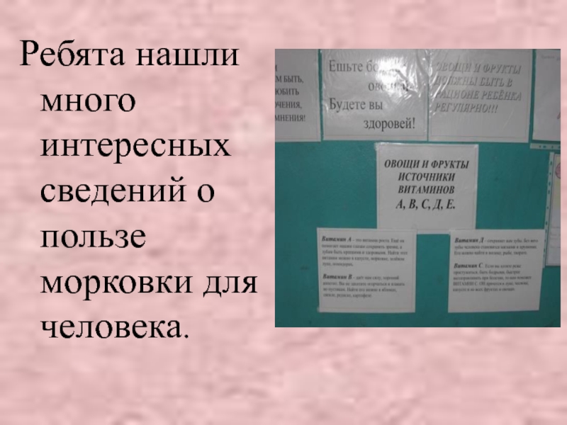 Слайд 7Ребята нашли много интересных сведений о пользе морковки для человека.