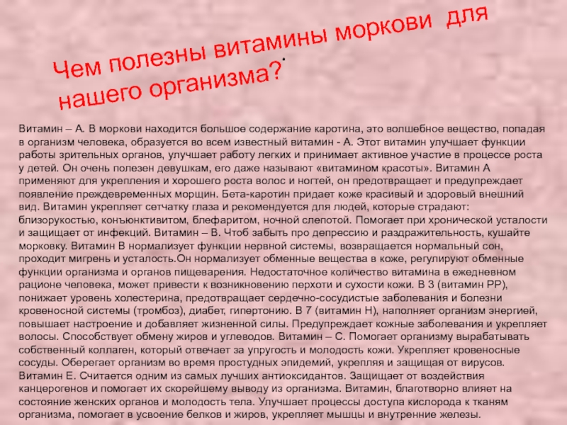 Витамин – А. В моркови