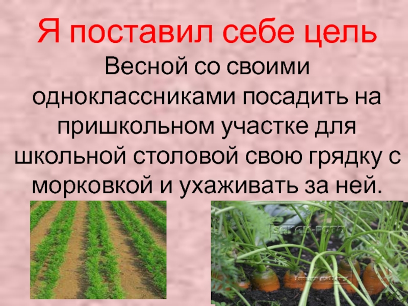 для школьной столовой свою грядку с морковкой и ухаживать за ней.
