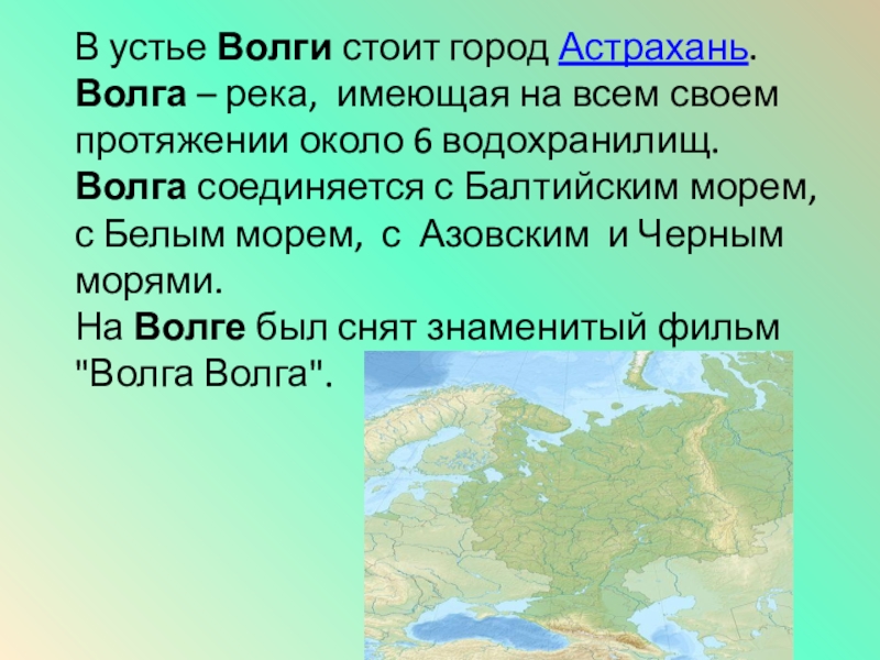Волга - могучая река, на которой находятся несколько плотин и около восьми гидроэлектростанций. Волга своей энергией питает целую сеть городов России.
