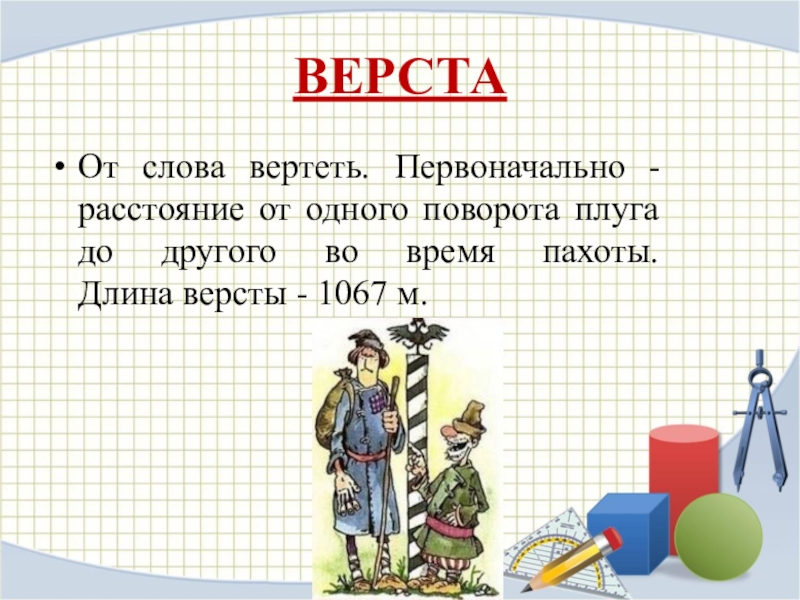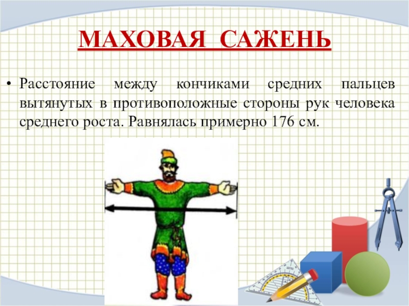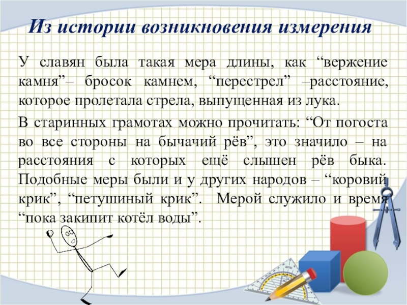 Слайд 13Не было народа, который не изобрел бы свои единицы измерения. Например,