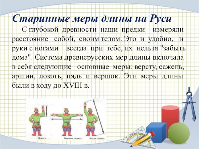 старинные меры длины, существовавшие на Руси, были связаны с частями тела