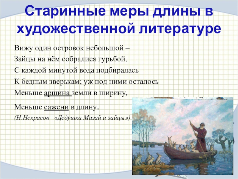 (Н.Некрасов «Дедушка Мазай и зайцы»)