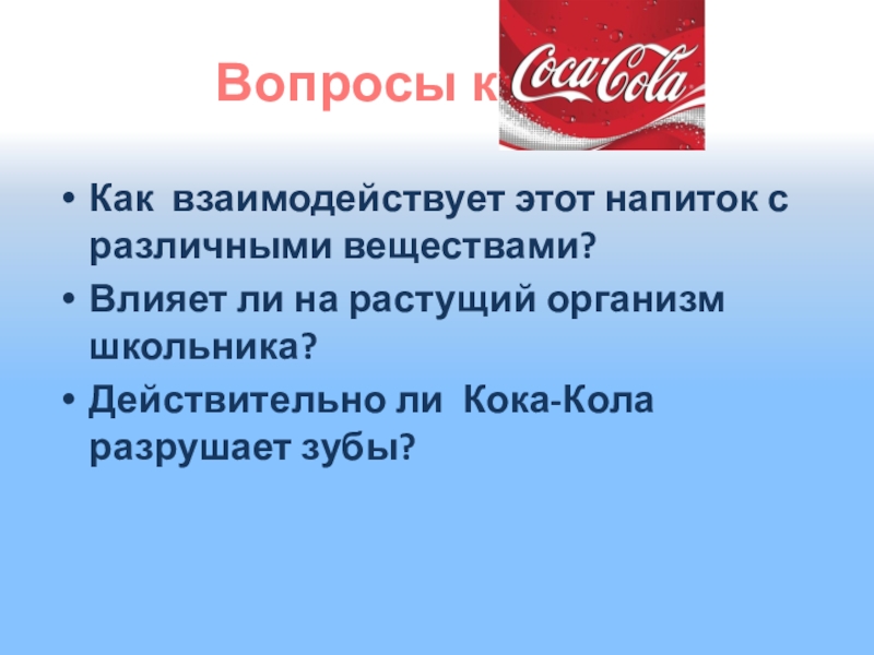 Вопрос 2. Почему ты пьёшь кока-колу?